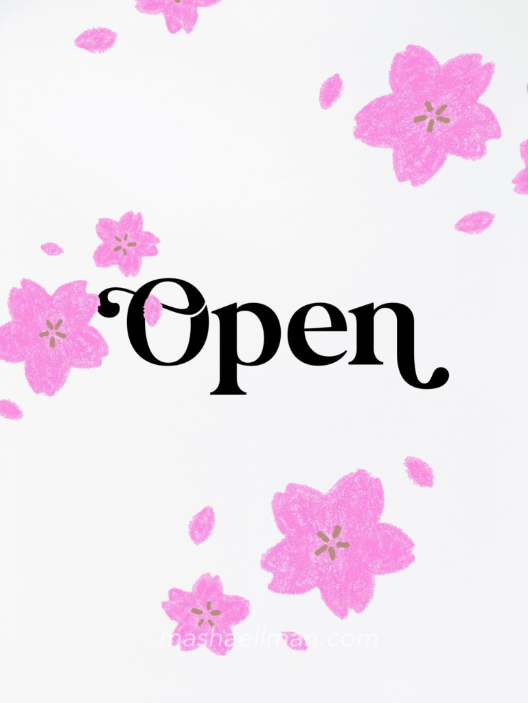 The word that chose me for 2023 is OPEN – as soon as I realized it, unlike my words in previous years, I felt an immediate connection to it, and I right away got the feeling of – expansiveness – openness – spaciousness – not on the outside of me but, on the inside of me, it’s as if a wall has crumbled from around me and I can feel myself – O – P – E – N.
