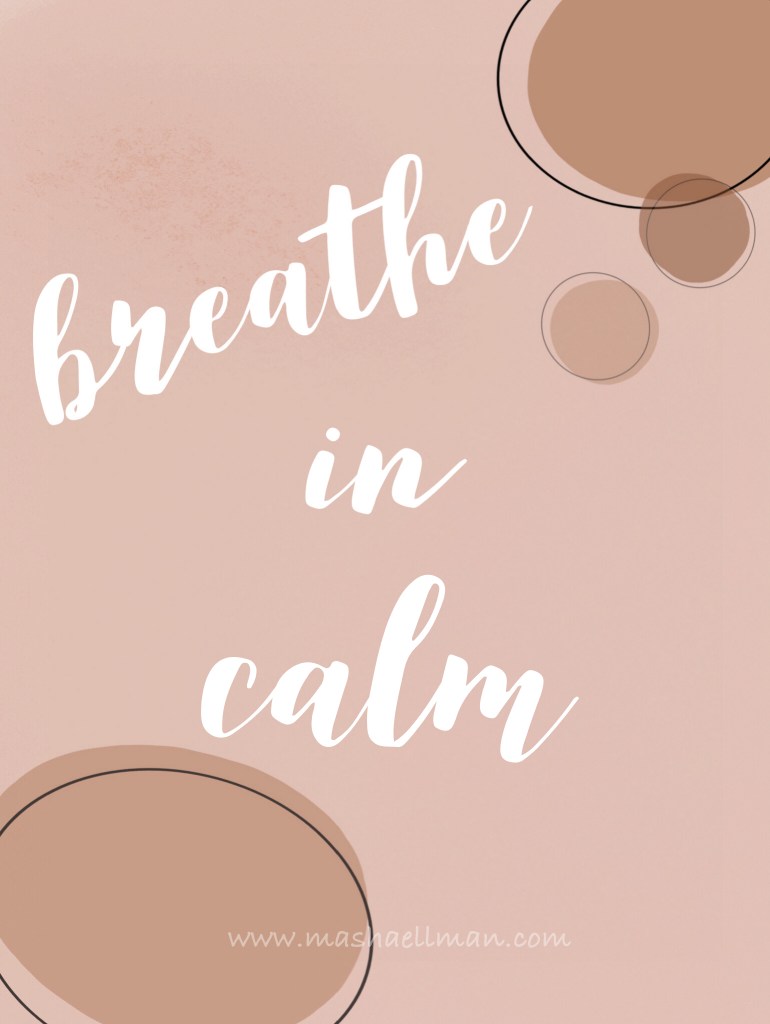 I stop for a moment, close my eyes and mindfully breathe in as deep as I can, and as I am breathing in, I’m thinking to myself – I a m c a l m – I am inhaling calm into me, and as I breathe out, I think to myself – a h h h h h h h – I’m exhaling out of me all the stress, I’m letting it out of me. I’ll do this about three times, sometimes more, and with every deep breath, as I’m breathing I feel my body relaxing, and I feel myself filling up with calm and releasing out of me all the stress and tension and whatever else I’m carrying in me, that is not serving my wellbeing.