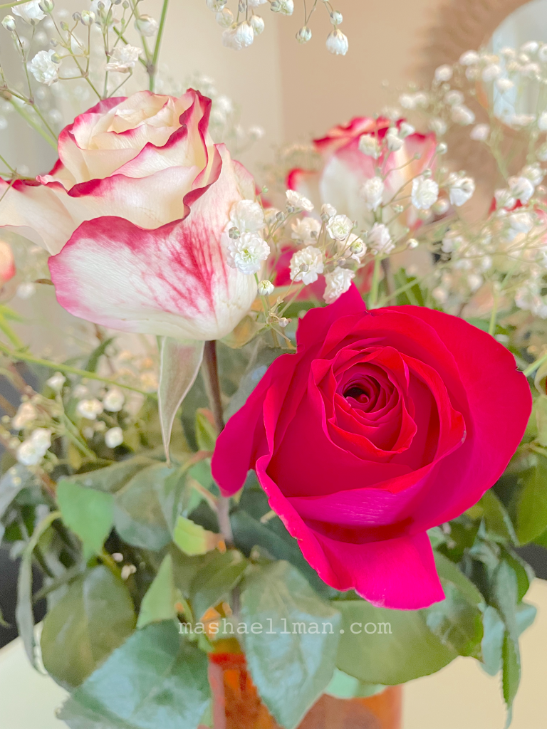 In my kitchen, a gift from some of the ladies I worked with. I went to the clinic for an eye exam and they gave me these gorgeous roses and a beautiful card, I’m so grateful.
